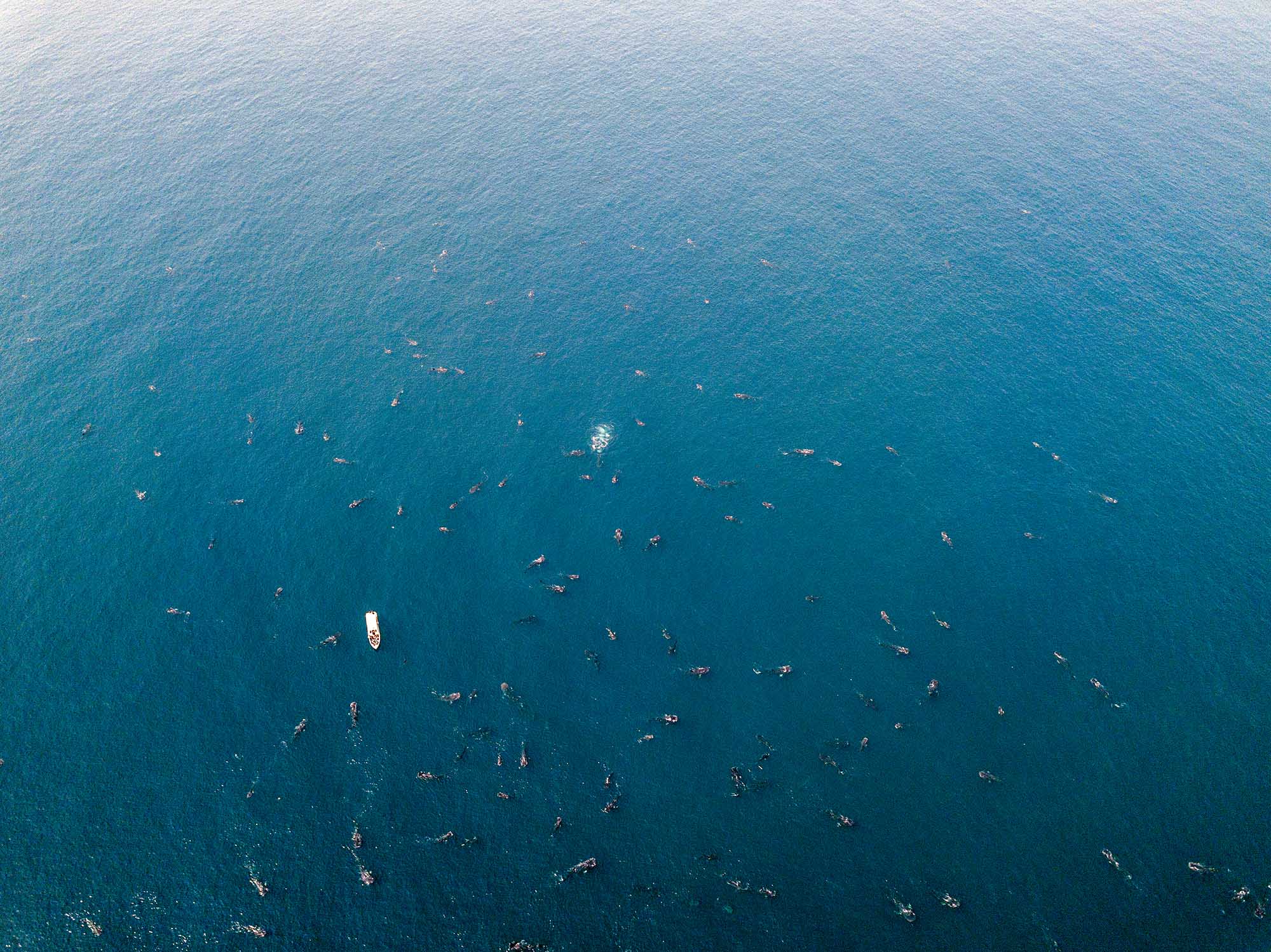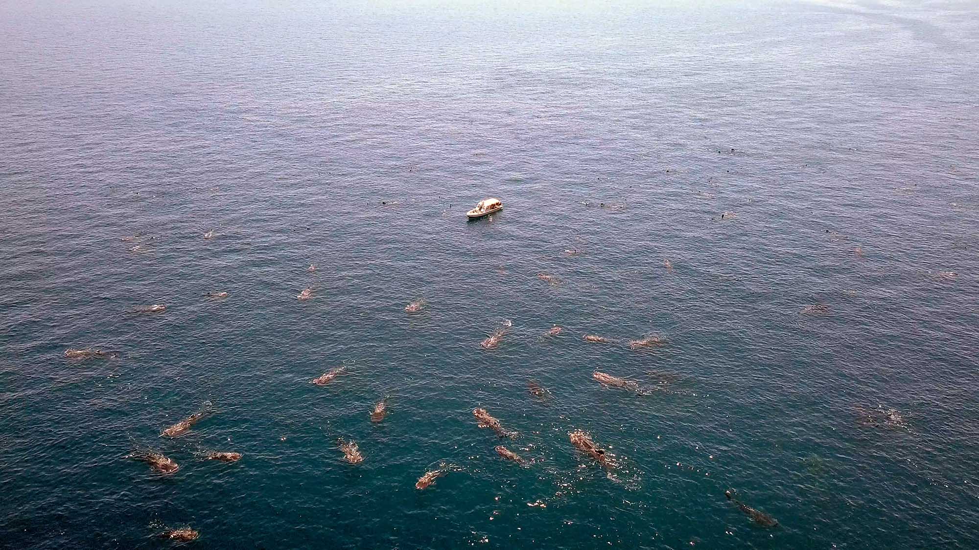 500 bireylik sürüyü Basra Körfezi’ndeki yolculukları sırasında drone ile görüntüleyen balina köpekbalığı araştırmacısı Tuğgeneral Mohamed Al Jaidah, “Katar, her yıl Nisan ve Eylül ayları arasında balina köpekbalıklarının en büyük buluşmalarına ev sahipliği yapıyor. Yüzlerce görkemli balina köpekbalığı, esasen bir havyar türü olan ton balığı yumurtasıyla adeta bir ziyafet için toplanıyorlar. Köpekbalığının sırt yüzgecine bağlı ve onlara rahatsızlık vermeyen uydu takip cihazı takıyoruz. Ya da balina köpekbalıklarına takılan akustik etiketlerle de dört yıla kadar hareketlerini izleyebiliyoruz. Balina köpekbalıkları beslenmek için kümeler halinde bir araya geliyorlar.