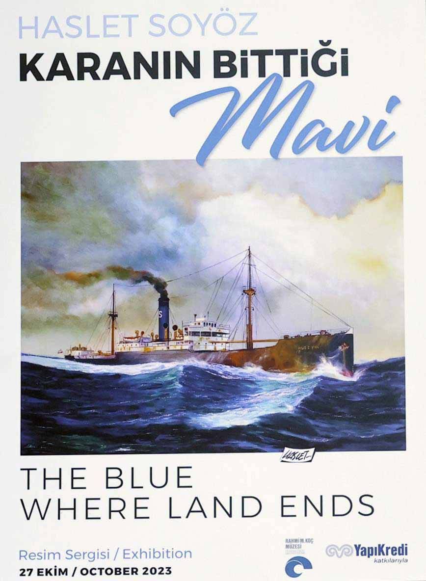 Usta karikatürist ve ressam Haslet Soyöz, yeni sergisi “Karanın Bittiği Mavi” ile denizcilik tarihine bir kez daha ışık tutuyor. Rahmi M. Koç Müzesi’nde ziyarete açılan sergide, dünyanın ilk halkla ilişkiler vapuru Karadeniz’den Türk Bayrağı’yla ABD’ye giden ilk vapur olan Gülcemal’e kadar Soyöz’ün ustalıkla resmettiği 26 deniz taşıtının yağlı boya tablosu yer alıyor.
