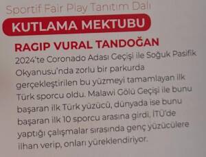Kabataş Erkek Lisesi’nden 1982 yılında mezun olan Vural Tandoğan, 16 yıldır dünyanın en zorlu deniz ve göllerinde kulaç atarak uzun mesafe yüzme rekorlarını ülkemize kazandırıyor. Manhattan Adası, Manş Denizi ve Catalina Boğazı’nı yüzerek Okyanus 3’lü Taç’ını kazanan ultra maraton yüzücüsü Vural Tandoğan birbiri ardına kazandığı rekor ve başarılarda motivasyon kaynaklarından biri olarak Kabataş Erkek Lisesi’ni görüyor. Türkiye Milli Olimpiyat Komitesi (TMOK) Fair Play Komisyonu, Vural Tandoğan’ı; ‘2024 Fair Play Sportif Tanıtım Dalı Kutlama Mektubu’na layık gördü.