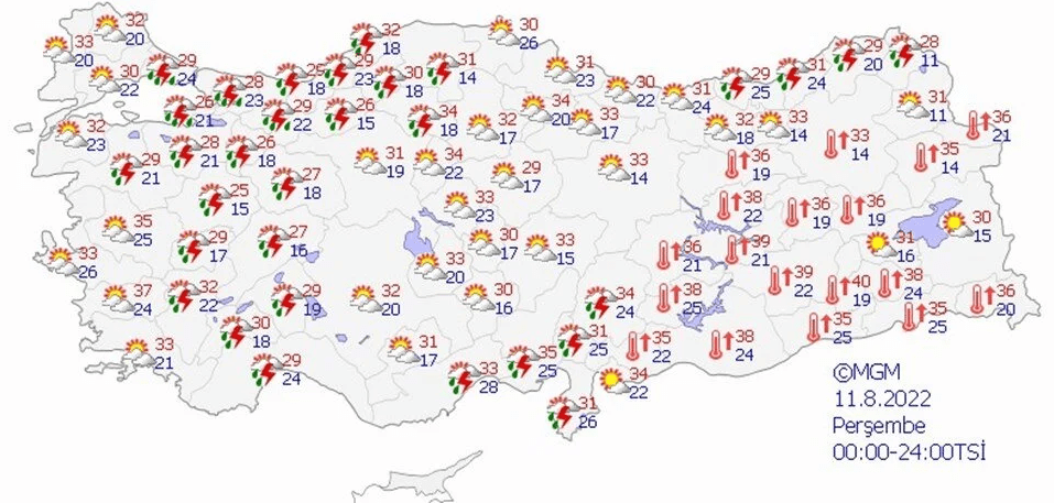 Açıklamanın devamında, “Kısa süreli ve ani bastıran sağanaklar şeklinde etkili olması beklenen yağışların bazı bölgelerde normalin üzerinde olması da muhtemel. AKOM, yaşanabilecek olumsuzluklara karşı hazırlıklı ve tedbirli olunmasını öneriliyor” denilirken, yağışlı hava ile birlikte şimşek ve yıldırımın etkili olmasının beklendiği vurgulandı.