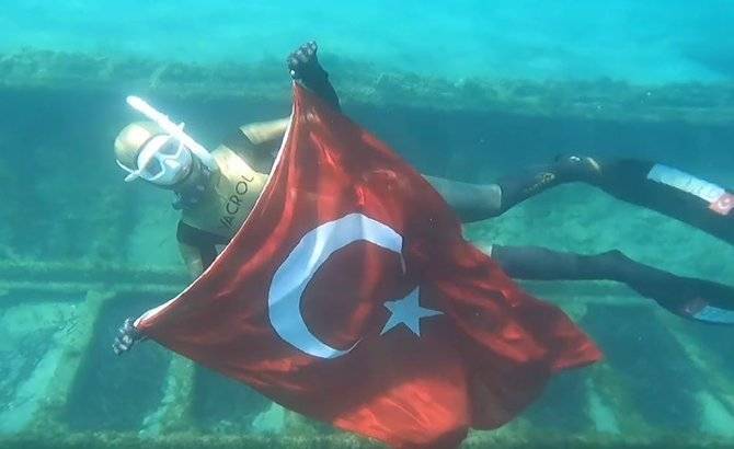 Serbest dalış rekortmeni milli sporcu Birgül Erken, Şehitleri Anma Günü ve Çanakkale Deniz Zaferi’nin 107. yılı dolayısıyla Tarihi Gelibolu Yarımadası’nda anı dalışı yaptı.