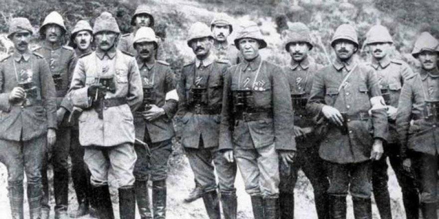 Ortadaki kalpaklı Türk komutanı Selahattin Adil Paşa (Neşesi yerinde olan ve devamlı gülümseyen)