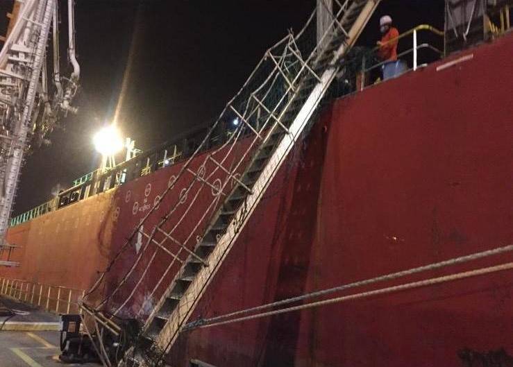 Aşağıdaki fotoğraflarda görüldüğü üzere geminin ve sahilin dizaynı itibarıyla limitlerin dışında kullanılmak zorunda kalmış sürme iskeleler görülmektedir:
