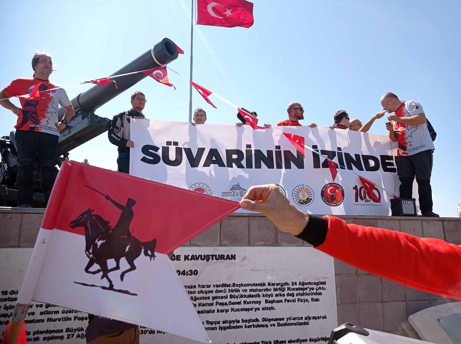 6 bin süvarinin geçtiği dar geçitlere ve yüksek tepelere yönelen motosikletliler önce Büyük Kalecik kasabasındaki Kocatepe Atatürk Anıtı ve Kitabesi’ne gitti. 100 metrekarelik Türk bayrağı açarak süvari birliğinin yaşadıklarını anlamaya çalışan motosikletlilerden 89 kişilik öncü grup 100 yıl önceki rotayı geçmek için hareket etti.