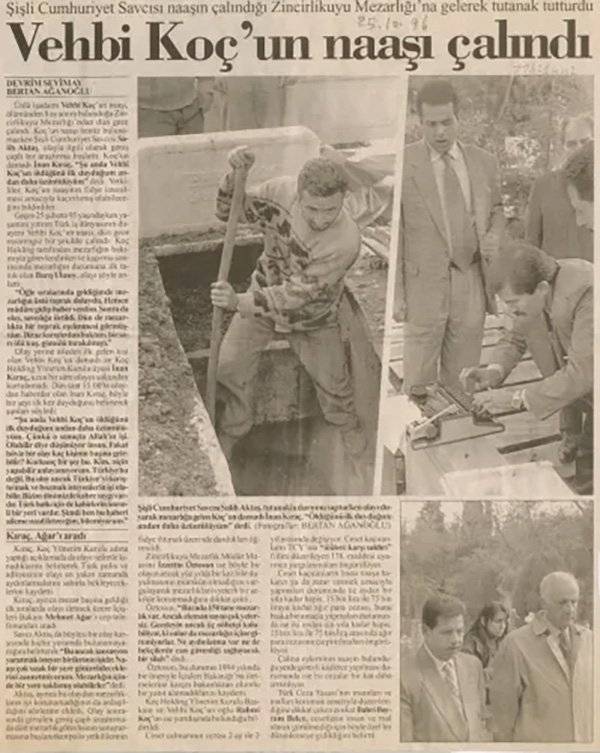 1997 – Vehbi Koç’un çalınan naaşı, Zincirlikuyu Mezarlığı’nda boş bir mezarda bulundu ve çalanlar yakalandı. Koç’un naaşı, 10 Ocak’ta ikinci kez toprağa verildi.