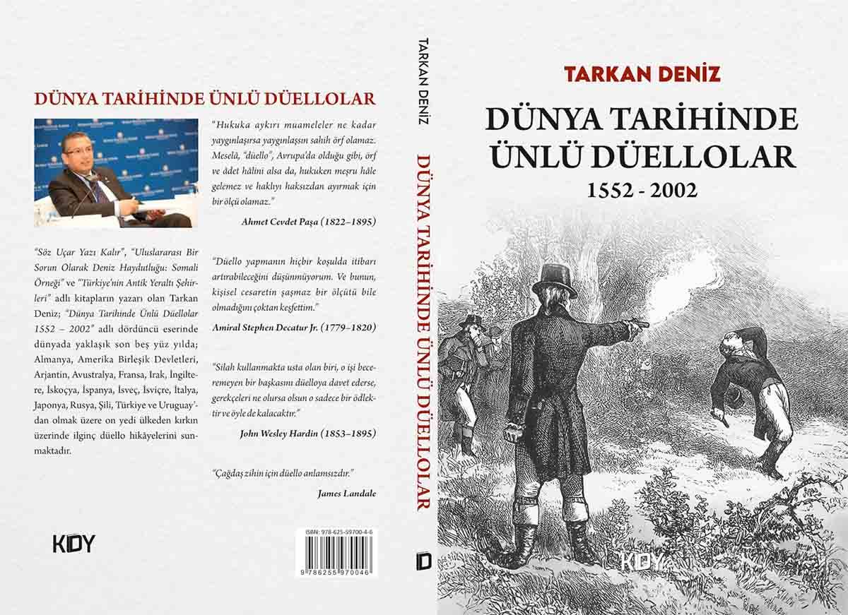 “Söz Uçar Yazı Kalır”, “Uluslararası Bir Sorun Olarak Deniz Haydutluğu: Somali Örneği” ve “Türkiye’nin Antik Yeraltı Şehirleri” adlı kitapların yazarı olan Tarkan Deniz; “Dünya Tarihinde Ünlü Düellolar 1552 – 2002” adlı dördüncü eserinde dünyada yaklaşık son beş yüz yılda; Almanya, Amerika Birleşik Devletleri, Arjantin, Avustralya, Fransa, Irak, İngiltere, İskoçya, İspanya, İsveç, İsviçre, İtalya, Japonya, Rusya, Şili, Türkiye ve Uruguay’dan olmak üzere on yedi ülkeden kırkın üzerinde ilginç düello hikâyelerini sunmaktadır. Bir yıla aşkın süren yoğun ve titiz araştırmaların sonucu ortaya çıkan eser, “ünlü düellolar” konusunda bugüne kadar yapılan en geniş kapsamlı çalışma olmuştur.