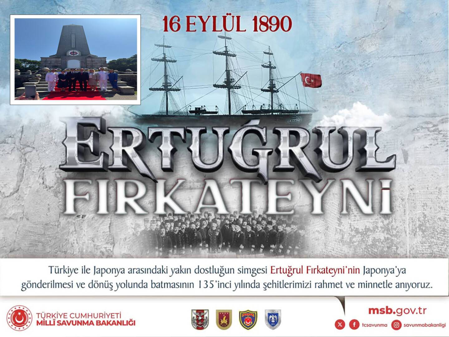 “Türk ve Japon dostluğu için 135 yıl önce yola çıkan ve dönüşte fırtınaya yakalanarak batan Ertuğrul Fırkateyni’ndeki şehitlerimizi rahmet, minnet ve saygıyla anıyoruz.”