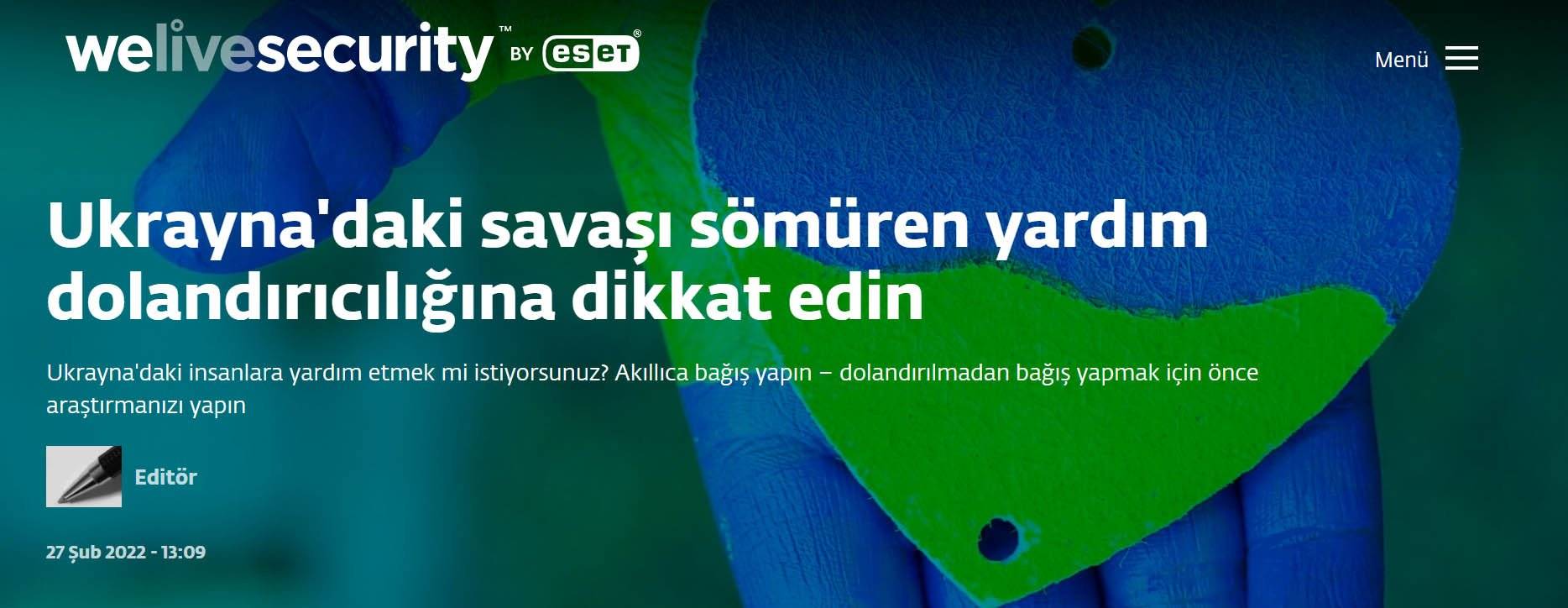 Siber güvenlik şirketi ESET, yardım bahanesiyle para isteyen bazı web siteleri saptadı. Siber dolandırıcılar Ukrayna halkı ile dayanışmak için duygusal…