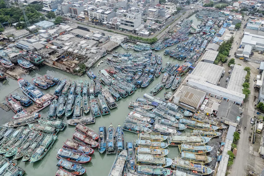 Endonezya'da başkent Cakarta'da bulunan limana binlerce balıkçı teknesi yanaştı. Yaşanan yoğunluktan dolayı tekne hareketleri durma noktasına geldi.