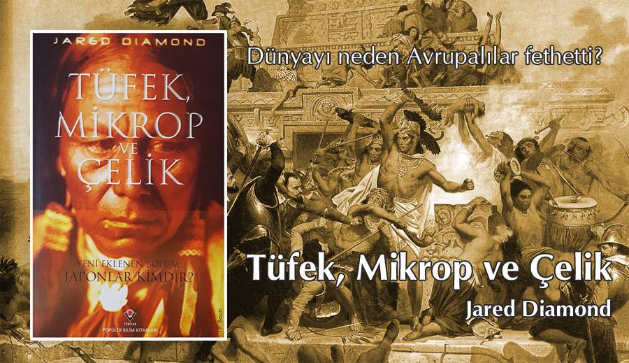“Tüfek, Mikrop ve Çelik” olarak adlandırılan kitabın öyküsü ve tarihin yönlendiricisi olarak elinde tüfeği olan çeliği kullanan ve mikrop yayan insanların dönüştürdüğü dünyamızın nasıl farklılaştığı ve bugün ki teknolojik olarak gelişmiş devletlerin Amerika, Afrika ve Asya’nın birçok bölgelerini eline geçtiğini birçok açıdan sorgulamaktadır. Kitap aynı zamanda toplumların oluşması ile başlayan sosyalleşme ve toplumsal sözleşmeler sonrası, doğal dinler, semavi dinlerin, hukuk ve devletlerin nasıl geliştiği kurulduğu sorgulanarak irdelenmektedir. Kitaptaki mikropların ise Amerika kıtasındaki insanlara çiçek mikrobunu bulaştırarak on binlerce Amerikalı yerlinin ölümüne neden olduğunu belirtiyor. En önemlisi de; elinde tüfeği olan İspanyol askerlerin elinde silahı olamayanları nasıl öldürerek yok etiğini, kalanların ise dillerini ve inançlarını baskı ile değiştirdiğidir.