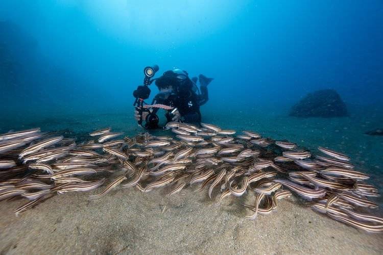 Doğu Akdeniz koylarında, popülasyonu hızla artan istilacı türdeki çizgili kedi balıkları su altı kamerasıyla görüntülendi. Çok sayıda canlı türüne ev sahipliği yapan Doğu Akdeniz'deki koylarda, çizgili kedi balıklarının sürüler halinde hareket ettiği görüldü. Su Altı Görüntü Yönetmeni Tahsin Ceylan, dalgıç ekiplerle Yayladağı ilçesi Hırlavuk koyuna dalış gerçekleştirdi. Yaklaşık 15 metre derinliğe dalan Ceylan ve beraberindeki ekip, Doğu Akdeniz'deki canlı türlerini su altı kamerasıyla görüntüledi. Görüntülere, aslan balığı ile leopar vatozun yanı sıra küresel iklim değişikliğiyle Akdeniz'e gelen ve sayıları her geçen gün artan çizgili kedi balıkları da yansıdı. ( Tahsin Ceylan - Anadolu Ajansı )