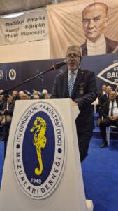 50’inci yıl mezunları adına konuşan Yılmaz Onur ise, ” Hepimizin içinde görüyorum ki 1975 ruhu var. Geriye dönüp bakınca en önemli kazancımız diplomalar değil paylaştığımız dostluklar birlikte yürüdüğümüz dostluklar olmuştur. Bugün burada aynı sofrada aynı deniz kokusunu söylüyorsak demekki hâlâ aynı gemideyiz. Bu gemi dostluğun, refahın, birlikte yaşamanın gemisidir . Bugün ufkun ötesine geçen yarım asırlık bir dostluğun içinde biliyoruz kendimizi. 50 yıl önce güverte ve makine olarak gücümüzü gemiden inmek için inancımızı ortaya koyardık. Ama en çok arkadaşların, dostluğun, omuz omuza dayanışmanın değerini öğrenmiştik. Bizim için okul sadece eğitim değildi. Aynı zamanda hayatın kendisiydi. Deniz bize sabrı, cesareti ve disiplini, fırtınalı günlerde birlikte çalışmayı öğretti. Büyük Önder Mustafa Kemal Atatürk’ün sözleriyle bitirmek istiyorum : “Denizciliği Türk’ün büyük milli ülküsü olarak düşünmeli ve onu az zamanda başarmalıyız”