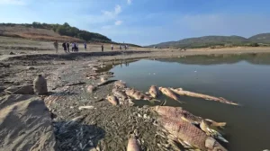 Bursa’nın Mudanya ilçesinde vahşi sulama yöntemleri ve kuraklığın etkisiyle kuruma noktasına gelen Çınarlı Göleti’nde su seviyesinin hızla düşmesiyle balık ölümleri arttı. Gölette binlerce balığın telef olduğunu söyleyen Çınarlı Mahallesi Muhtarı Mehmet Turan, “Bir an önce yetkililerin buraya su takviyesi yapması ya da kalan balıkların sağlıklı bir şekilde başka barajlara nakledilmesi gerekiyor” dedi.
