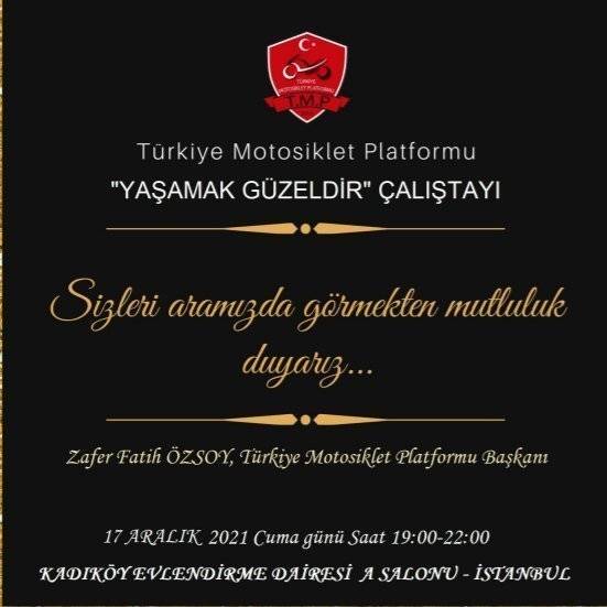 Türkiye Motosiklet Platformu, motosiklet kazalarının önlenmesi ana amacıyla düzenlediği çalıştayı duyurdu. TMP; “Her şeyin eğitimle olacağının bilincindeyiz ve Türkiye Motosiklet Platformu olarak öncelikle bu çalıştayda durum tespiti yapıp, sonrasında bu çalıştay ve seminerleri daha detaylandırarak, camiamızı çok güzel günlere taşımayı amaçlıyoruz. Huzurlu ve güvenli, kazasız ve sorunsuz güzel günlere hep birlikte ulaşmamız dileğimizle, çalıştayımıza katılımınızı bekliyoruz.” şeklinde açıklama yaptı.