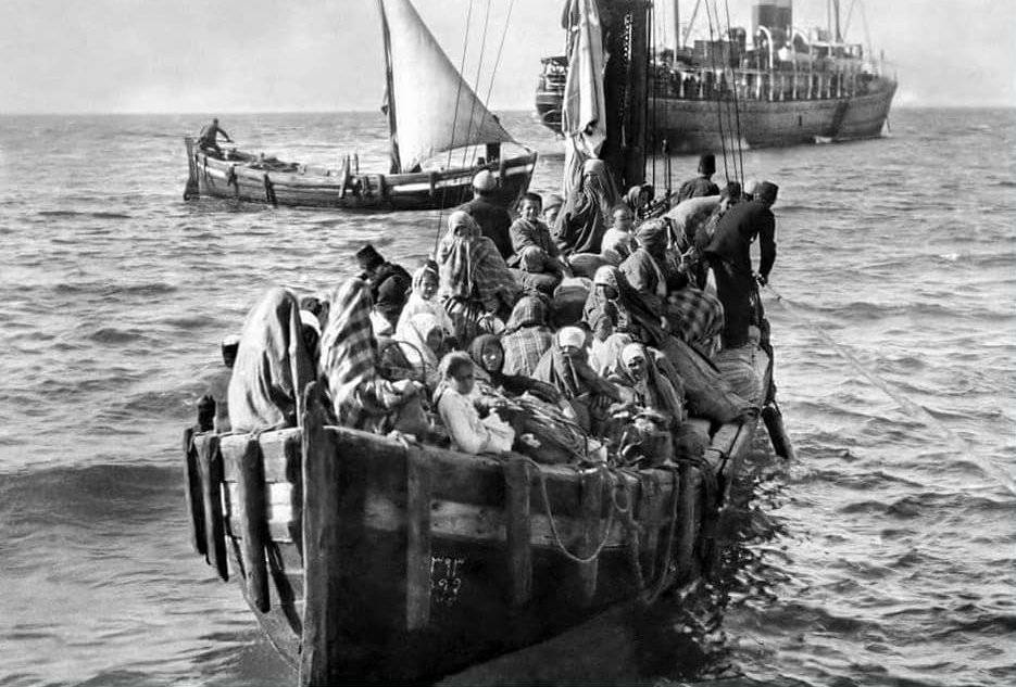 “Yunan itisafatından (zulmünden) Hilal-i Ahmer marifetiyle kurtarılıp Yalova’dan İstanbul’a nakledilen muhacir kafilelerinin Gülnihal vapuruna irkap (bindirilme) ameliyesi.”