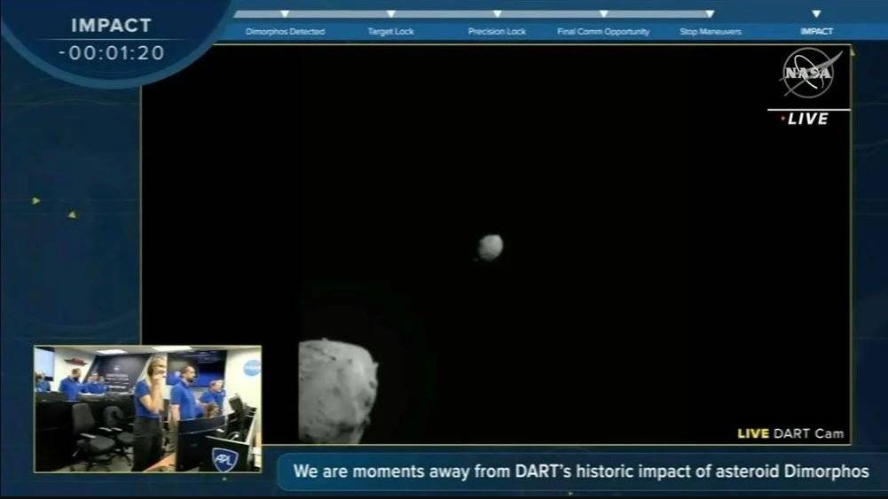 DART’ı geliştiren Maryland’deki Johns Hopkins Uygulamalı Fizik Laboratuvarı’ndan yönetilen planlı çarpışma sonrası, NASA yetkilisinin canlı yayında, “Bu, insanlığın bir gök cisminin rotasını değiştirmek üzere yaptığı ilk girişimdi.” şeklindeki sevinç ifadeleri duyuldu.