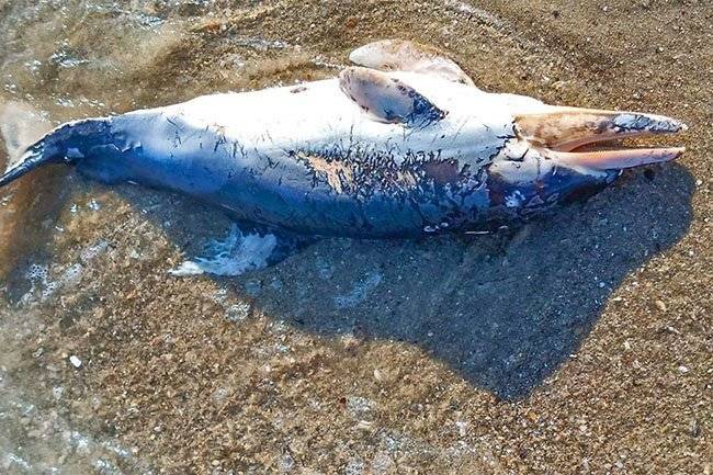 29 Temmuz’da Tuzlovsky Limanı Ulusal Parkı’ndaki bir plajda karaya vurmuş memeli hayvanın fotoğrafı çekildi. Çekilen fotoğrafta hayvanın çeşitli yaralar alarak öldüğü ve bunun sonucunda karaya vurduğu gözüküyor. 2 Haziran da çekilen diğer fotoğrafta ise yanmış ve parçalanmış yunus gözükmektedir. Savaşta insanlar kadar suçu olmayan hayvanlar da zarar görüyorlar. Savaş yüzünden çoğu ölüyor, savaştan kaçabilenler ise balıkçı ağlarına takılıp, yine insanlık yüzünden ölüyorlar.