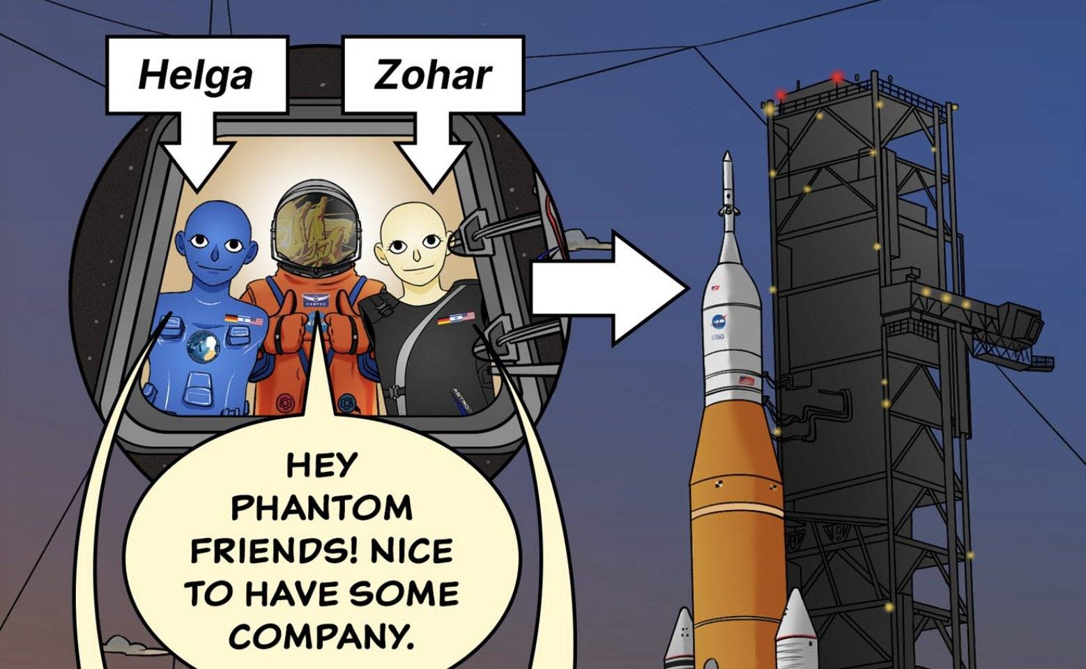 Uzay kapsülünün içinde General Moonikin Campos, Helga ve Zohar adlı mankenler ile yolculuk etti. Gerçekçi yapılan bu mankenler Ay’a gidiş ve dönüş sırasında ki astronotların maruz kalabilecekleri sorunları ön görmeyi sağladı.