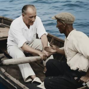 Konferans bittiğinde kopan alkış tufanı arasında sahneden inmeye hazırlanırken salondan birinin sorduğu soruyu cevaplamak üzere tekrar kürsüye döndü.