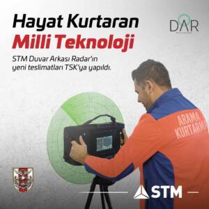 “Güvenlik güçlerimizin özel operasyonlarda, bina içindeki canlı hedefleri tespit etmesi için geliştirdiğimiz ve güvenlik güçlerimizin envanterine kattığımız milli teknolojimiz Duvar Arkası Radar, geçen yıl yaşadığımız depremde 50’den fazla vatandaşımızın enkaz altında konumunu tespit ederek, kurtarılmasını sağladı. DAR’ı, bu yıl Denizli Büyükşehir Belediyesi İtfaiye Dairesi Başkanlığına ve deprem kuşağında yer alan Erzincan’ın İl Özel İdaresi envanterine kazandırdık. Şimdi ise Savunma Sanayii Başkanlığımız ile imzaladığımız sözleşme ile Türk Silahlı Kuvvetleri’ne ‘STM DAR’ın kabullerini ve teslimatlarını tamamladık. Ülkemiz savunmasının yanı sıra ulusal ve uluslararası çapta yaşanan doğal afet ve krizlerde nitelikli personeli ile kritik görevler üstlenen Ordumuza, milli teknolojimiz ile güç vereceğiz. Deprem ülkesiyiz ve buna karşı önlemleri almamız gerekiyor. DAR’ı, arama kurtarma ekiplerimiz, itfaiye teşkilatlarımız başta olmak üzere bu alanda faaliyet gösteren tüm kurum ve kuruluşlarımızın envanterinde genişletmeyi ve böylece ülkemizin doğal afetlere hazırlık seviyesini artırmayı hedefliyoruz.”