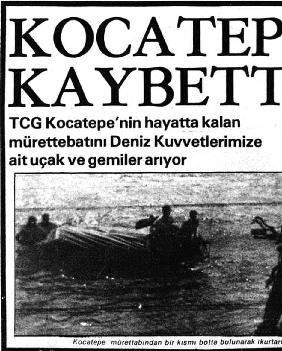 Türk Hava Kuvvetleri’ne ait savaş jetleri, istihbarat hatası ve haberleşme eksikliğinden, Türk savaş gemilerini Yunan filosu sanarak, gemilere bombardıman başlattı. TCG Fevzi Çakmak ve TCG Adatepe aldıkları hafif hasarla Mersin Limanı’na ulaşmayı başarırken, TCG Kocatepe ise aldığı ağır hasar sonucu battı. 54 askerin şehit olduğu gemiden, 42 asker İsrail Deniz Ticareti Okulu teknesinin yardımıyla kurtuldu. Kurtulanlar arasında, daha sonra 16. Deniz Kuvvetleri Komutanı olan, Kocatepe’nin komutanı Güven Erkaya da yer aldı. TCG Kocatepe, Cumhuriyet donanmasının harp durumunda kaybettiği ilk gemi olarak kayıtlara geçti.