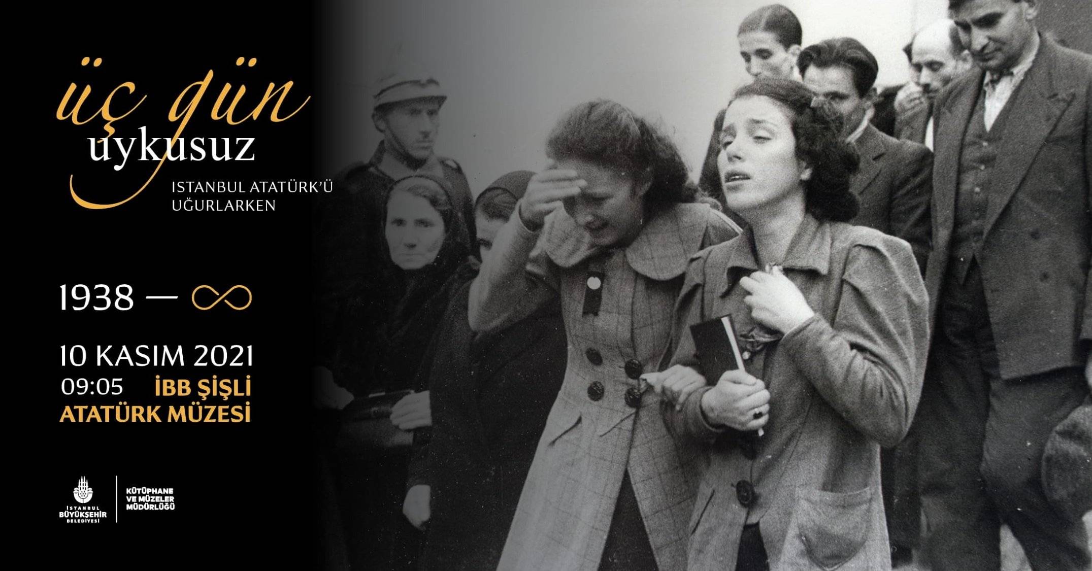 İstanbul Büyükşehir Belediyesi (İBB) Kütüphaneler ve Müzeler Müdürlüğü, Mustafa Kemal Atatürk’ün ebediyete intikalinin 83’ncü yılında özel bir sergiyi ziyarete açtı. 10 Kasım’da gösterilemeye başlanan ‘Üç Gün Uykusuz: İstanbul Atatürk’ü Uğurlarken’ sergisi, 16 Kasım 1938’de Dolmabahçe Sarayı Merasim Salonu’ndaki törenlerle başlıyor. İstanbul halkının üç gün süren vedasının ardından Ata’nın naaşının 19 Kasım 1938 Sarayburnu’na taşınarak Ankara’ya uğurlanmasıyla sona eriyor. Türk halkının büyük mateminin yansıtan sergi 10 Aralık’a kadar Atatürk Müzesi’nde ziyaretçilerini ağırlayacak.