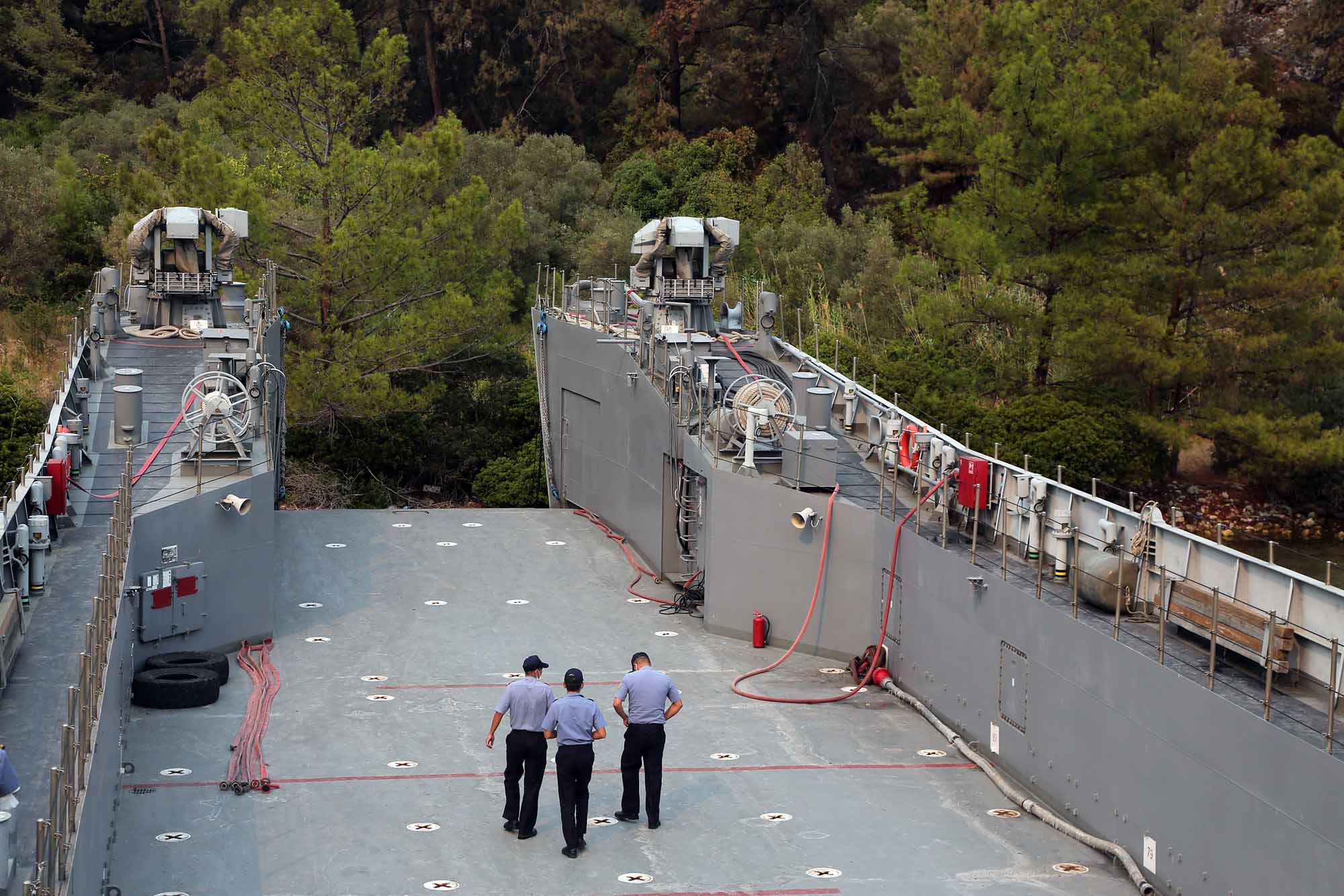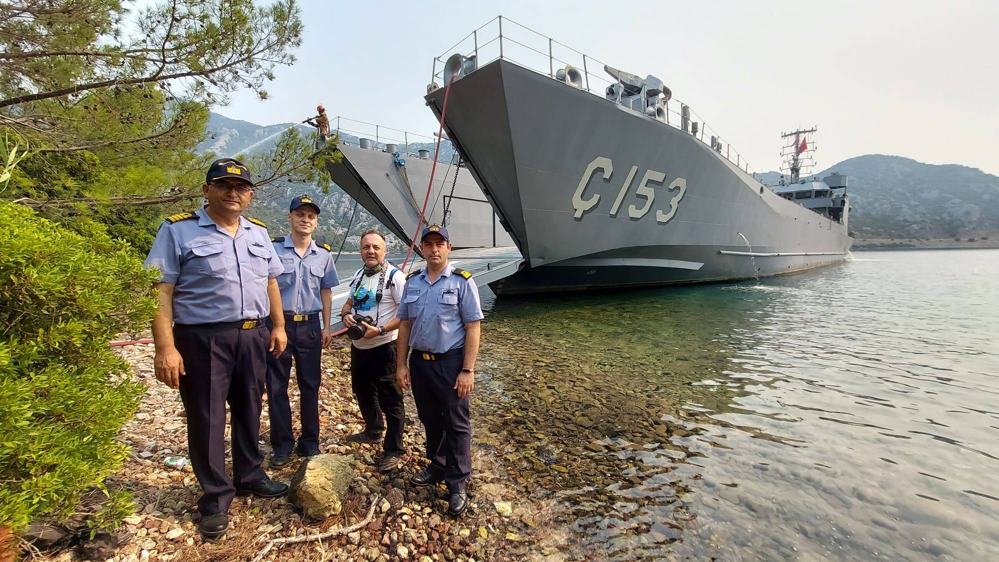 Marmaris ve Bodrum gibi turizm merkezlerinin sık bitki örtüsü ve sarp arazisinde süren orman yangınları söndürme çalışmalarını zorlaştırırken, Deniz Kuvvetleri Komutanlığı’na bağlı birimler denizden ve havadan söndürme çalışmalarına katılıyor. Donanmanın gelişmiş görüntüleneme ekipmanlarına sahip insansız hava araçları ve deniz karakol uçakları, insanların ulaşamadığı yerlerde ortaya çıkan ilk kıvılcımları Orman Genel Müdürlüğü ile paylaşırken, alevlerin yayılmasının engellenmesi için çıkarma gemileri görevlendirilmişti. Acil görevle Foça’daki Çıkarma Filosu’ndan Marmaris, Milas ve Bodrum çevresine gönderilen çıkarma gemileri alevlerin tespiti ve ilk müdahale ile söndürülmesinde önemli rol oynuyor. TCG Ç-151 ve TCG Ç-155 TCG KAŞ karakol gemisi eşliğinde Gökova Körfezi’nin Ören bölgesinde, TCG Ç 153 ve TCG Ç-154 Hisarönü Körfezi’nin Delikliyol bölgesinde, TCG Ç 147 ise Marmaris’in Turunç bölgesinde görevini sürdürüyor. 5 çıkarma gemisi özellikle karayoluyla ulaşımın mümkün olmayan engebeli araziler üzerinde yoğun çalışmalar yürütüyor.