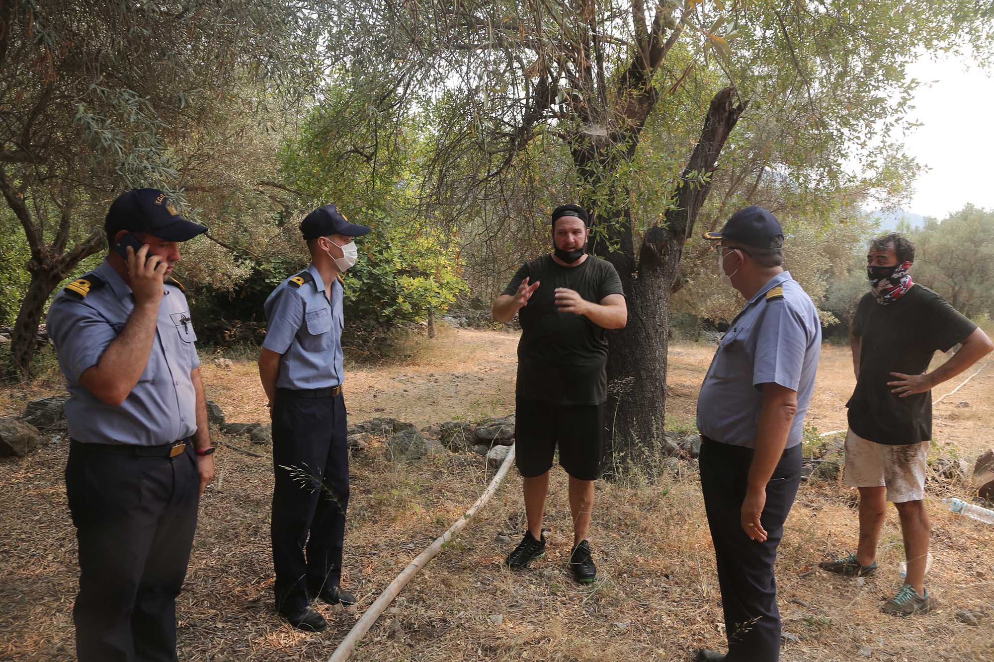 Öte yandan körfezde kara yoluyla uluşımı olmayan bir evde yaşayan ünlü komedyen Şahan Gökbakar da Deniz Kuvvetleri Komutanlığı’na yardımlarından ötürü teşekkür etti. Ç 153 ve diğer çıkarma gemilerinin yangını söndürmedeki başarısını vurgulayan Gökbakar, çektiği videolarla bölgeye yangın söndürücü, yangın topu, testere, gaz maskesi gibi malzemelerin ulaşmasını sağlamıştı. Kara yoluyla ulaşım olmadığı için kendi teknesini yangınla mücadele için gelen malzemelerin getirilmesi için kullanan Gökbakar, kardeşi Togan Gökbakar ile uyumadan nöbet tutuyor. İtfaiyenin yangını önlemek için kestiği kızılçam ağaçlarının arasındaki patikadan 500 metre yürüyerek ulaşılan yangın bölgesinde kalan Gökbakar, denizden ve zamanında yapılan müdahalenin önemini dile getirdi.