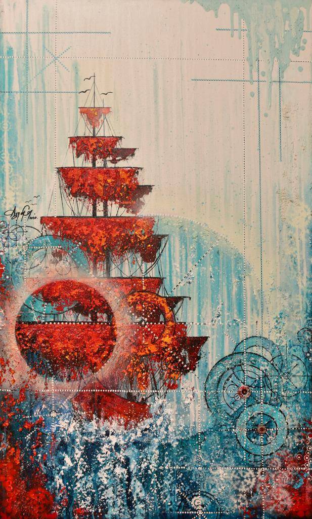 Ressam Ayşen Can, Atatürk’ün derin ve kendinden emin bakışları altında yüksek dalgaları aşar şekilde resmettiği Kartal istimbotunun yer aldığı eserine, ‘Geldikleri Gibi Giderler’ adını verdiğini belirterek, Mavi Vatan’ın gündemde olduğu bugünlerde Türkiye’ye denizlerin önemini de bir kere daha göstermek istediğini söyledi.