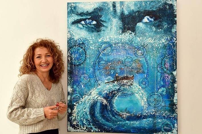 Denizci eşi Kapt. Mustafa Can ile 6 yıl boyunca kuru yük gemisinde yaşadığını ve okyanuslar aşarak 30’dan fazla ülkeyi ziyaret ettiğini dile getiren Can, “denizin belirsizliğinin sizi her an hazır olmak zorunda bırakarak kararlılık ve cesaretinizi artırıyor. Bu öyle bir belirsizlik ki, gemide ancak kara kalem resim yapabiliyorsunuz. Uzun süren karanlığın ardından güneşin kendini göstermesi ise adeta ikinci doğuşun müjdesi gibi geliyor. Bu nedenle eserlerime zaman zaman devasa dalgalarla boğuşan gemileri, zaman zaman da dingin sularda süzülen yelkenlileri aktarıyorum” dedi.